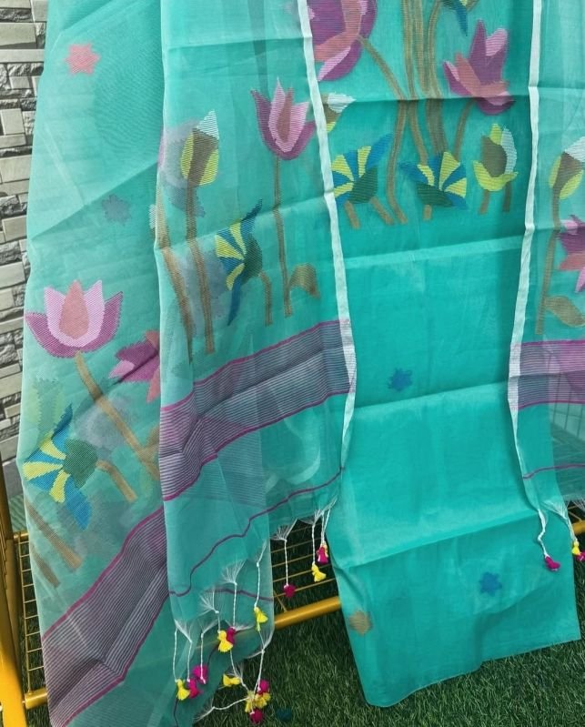 Pure Chanderi Suit Set, beautifully enhanced with intricate embroidery. This timeless ensemble features a graceful kurta with embroidery on the neck and sleeves, paired with matching bottoms and an elegantly embroidered dupatta — exuding sophistication and charm for every occasion. Fabric: Pure Chanderi Details: Embroidery on the neckline and sleeves, embroidered dupatta, customizable in your preferred color No. of Pieces: uslin Jamdani 2-Piece Set Kurti & Dupatta (UNSTITCHED) - Light Torque